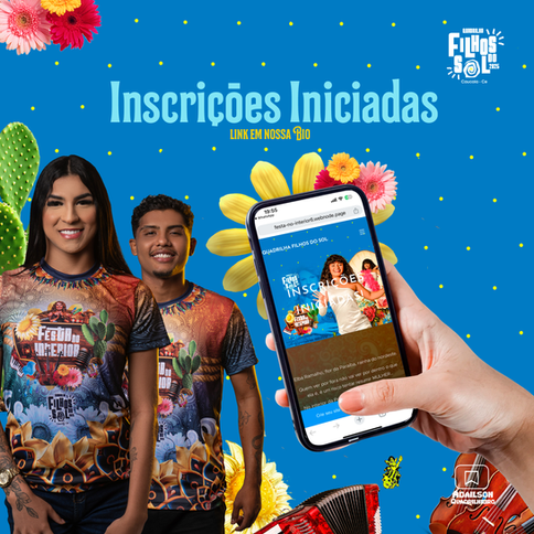 Comece o ano com tudo! Camisa temática, banner, vídeo de apresentação e identidade visual completa para sua quadrilha. Ideal para prévias e lançamentos iniciais.